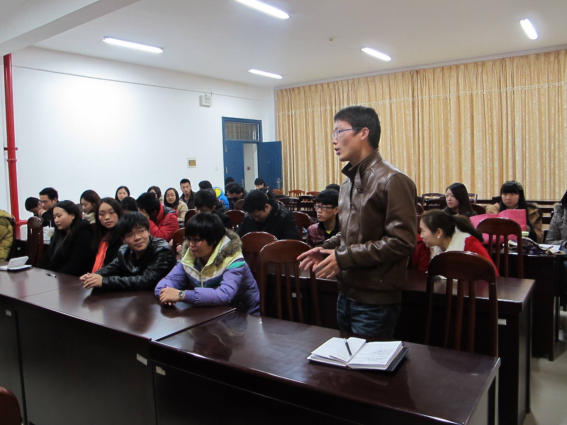 接下来,刘金明部长就“做一个什么样的干部”这一主题与大家进行深入交流。他对新一届研究生会、研究生团委干部提出了四点要求:要做善于学习的干部、做求真务实的干部、做会协调沟通的干部、做甘于奉献的干部,并希望新一届研究生会、研究生团委干部发扬上一届的优良传统,充分发挥 “自我教育、自我管理、自我服务”的“三自”职能,力求把今后的工作做得更好。
