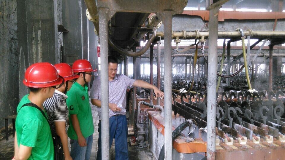 在实地考察的过程中,电化集团丁总向各位教授和同学详细介绍了电化厂的生产流程和污水处理情况。电化厂虽然是老厂,但是他们的生产工艺却很先进,而且通过二次利用,污水已经达到国家排放标准。在老厂考察完以后,丁总又带着考察团一行来到在建的电化新厂参观。新厂远离湘江,地处山区,不会对湘潭人民的生活造成影响。