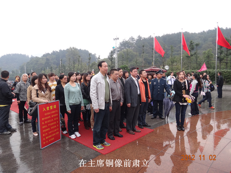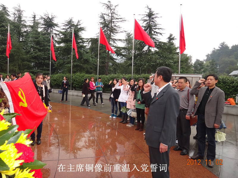 离开铜像广场,全体党员接着参观了毛主席故居及毛主席纪念馆。通过讲解员的详细讲解,透过橱窗中的一张张照片和一件件遗物,大家不仅仅领会到了毛主席作为一个国家领导人的雄才伟略,更明白了一个优秀党员所应该具备的优秀品质。在参观过程中党员们不时发表自己的感概,觉得此行真正受到了一堂生动的党课教育。全体党员通过此次重温入党誓词,共同缅怀伟人和革命先烈的丰功伟绩,接受革命传统教育活动,不仅感受到了作为共产党员的骄傲与自豪,更感受到了建设社会主义现代化国家的沉甸甸的历史使命!