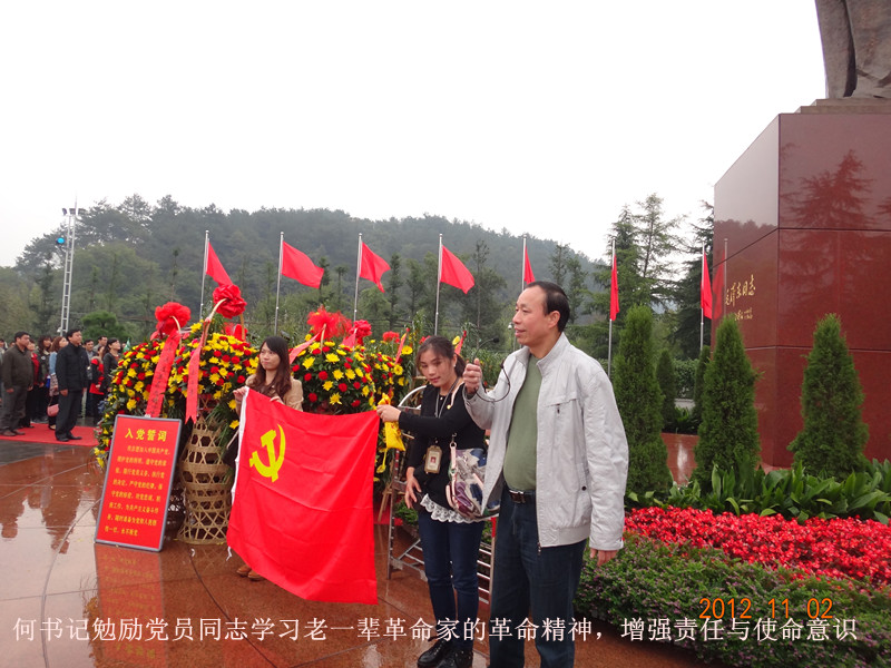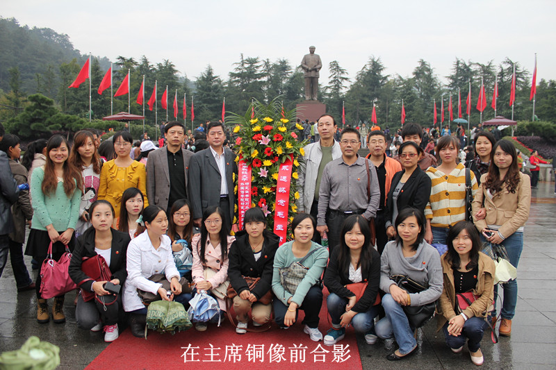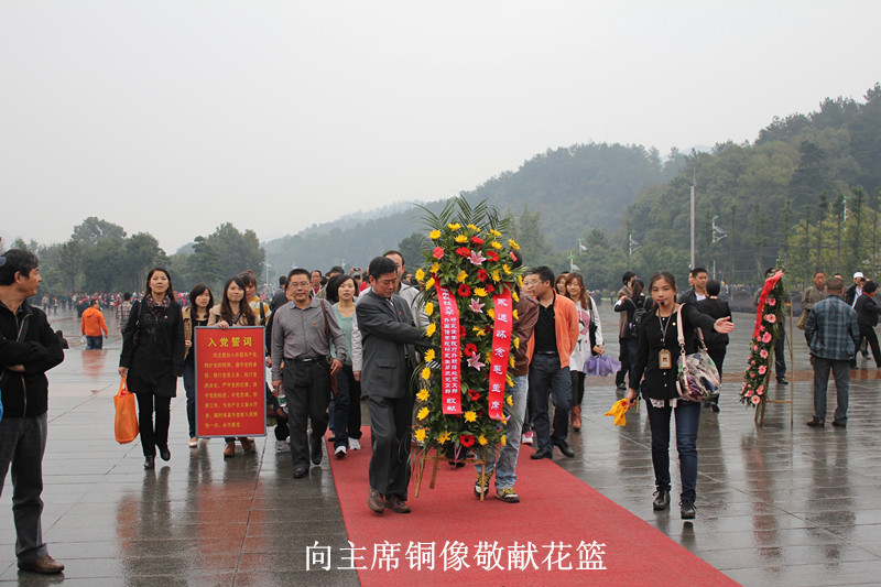 上午9:30,两个支部的全体党员抵达韶山。大家怀着无比崇敬和怀念的心情,来到毛主席铜像广场,向毛主席铜像敬献了花篮。在毛主席铜像下,研究生学院、对外联络处党支部书记何立强同志发表讲话。他强调“爱党的最基本体现应该从了解党的历史开始”,开展此次活动是为了让全体党员进一步了解党的历史,加深对党的认识,体会老一辈革命家“为有牺牲多壮志,敢叫日月换新天”的革命精神,增强责任意识、使命意识,在工作和学习中更好的发挥共产党员的先锋模范作用。
