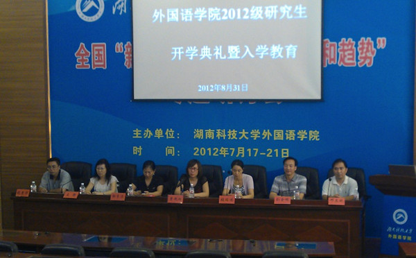8月31日下午3点,外国语学院2012级研究生入学典礼暨入学教育在外语楼101室隆重举行。出席开学典礼的有外国语学院院长曾艳钰教授、党委书记张瑞鸿教授、副院长刘金明教授、副院长徐李洁教授、副院长王静教授、副院长张景华博士、副书记邓志斌等学院领导。2012年我院研究生招生成绩再创佳绩,经过多轮竞争,46名考生脱颖而出,为我院研究生队伍注入了新鲜血液。