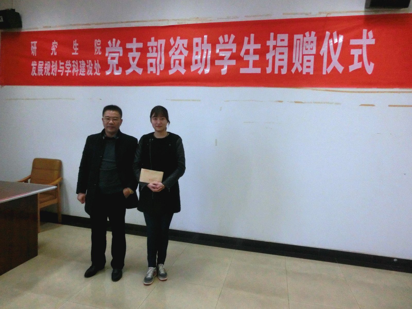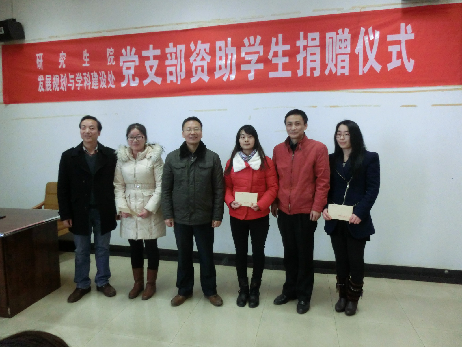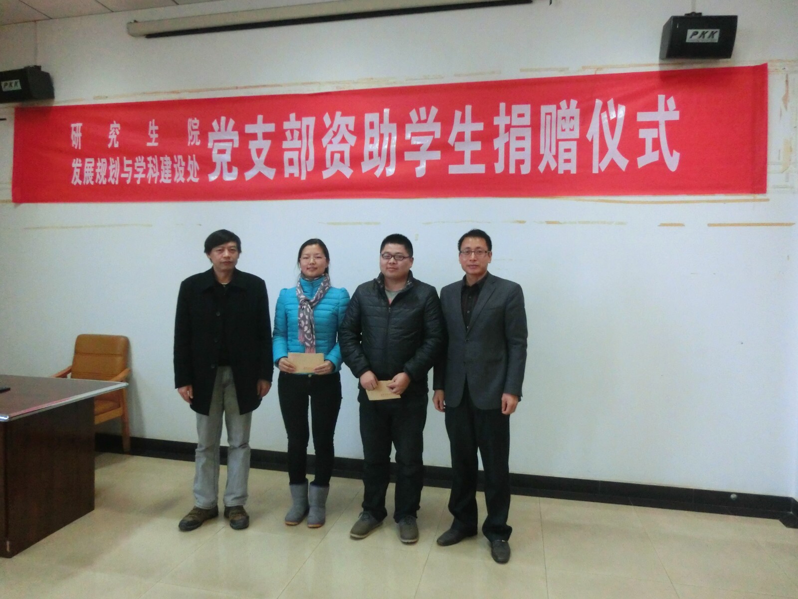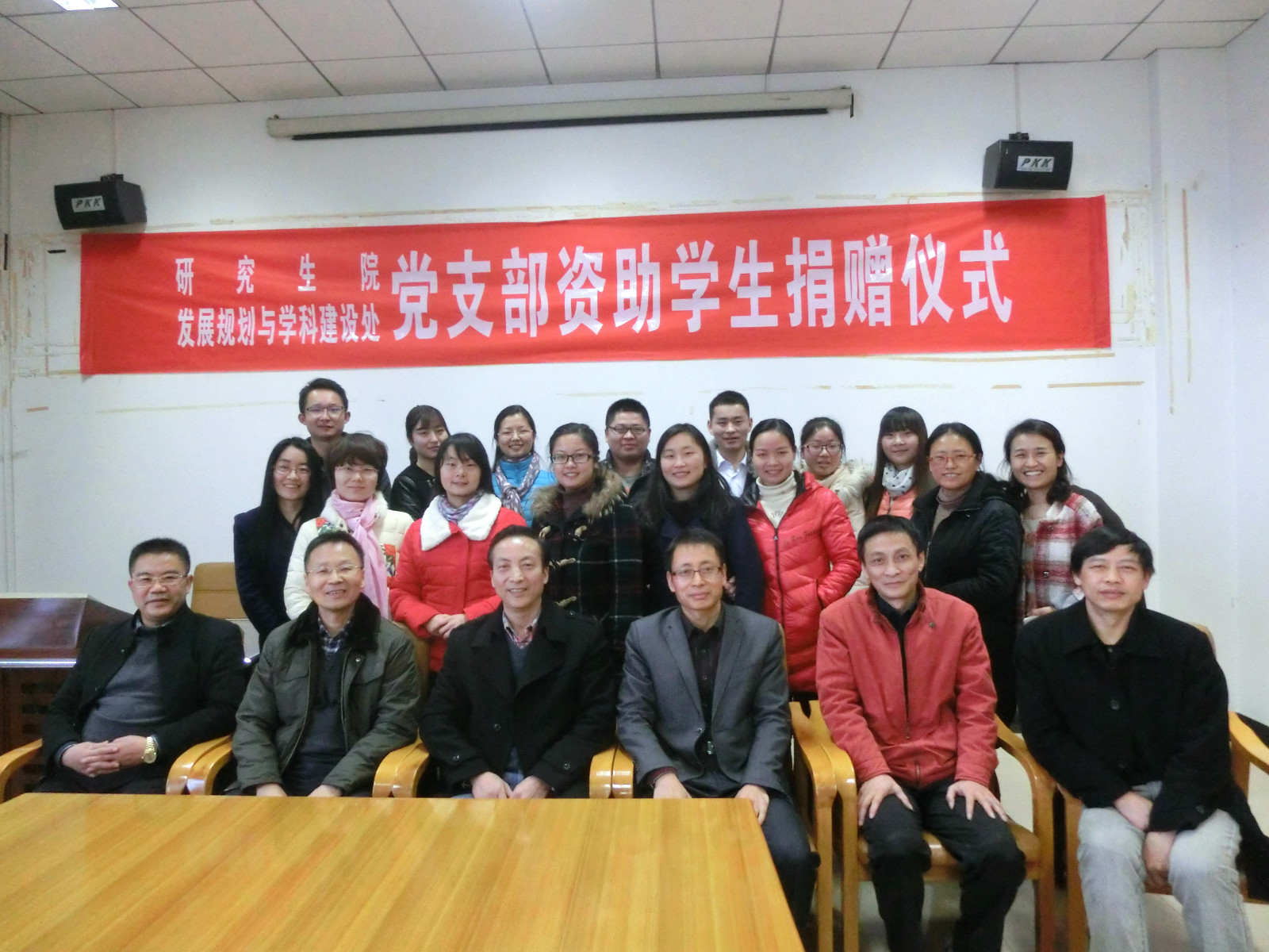 2014年12月23日下午,研究生与学科党支部资助贫困研究生捐赠仪式在南校区图书馆九楼会议室举行。研究生与学科党支部以及马克思主义学院研究生党支部全体党员参加了本次捐赠仪式。仪式由研究生工作部部长刘金明主持。