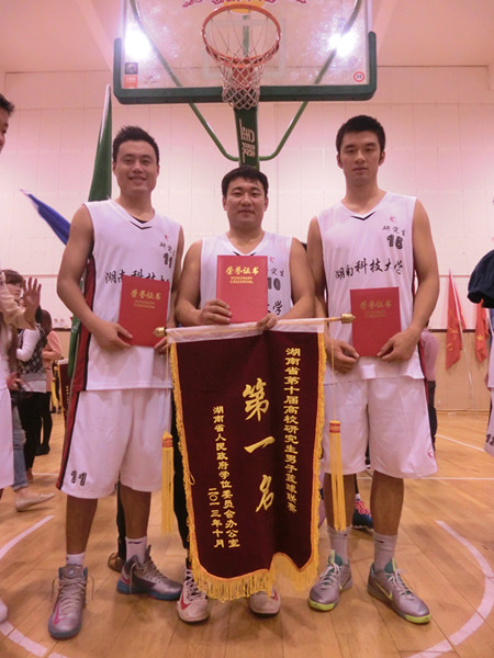10月22日,湖南省第十届高校研究生男子篮球联赛在中南林业科技大学拉开序幕。此次共有包括国防科技大学、中南大学、湖南大学、湖南师范大学、湘潭大学在内的13支研究生男子篮球代表队参加本次比赛。经过五天的激烈角逐,我校研究生男子篮球队一路过关斩将,冲进决赛。10月26日,与湖南师范大学研究生男子篮球队展开了冠军争夺战。最终以78:65战胜对手,勇夺冠军,实现三连冠。