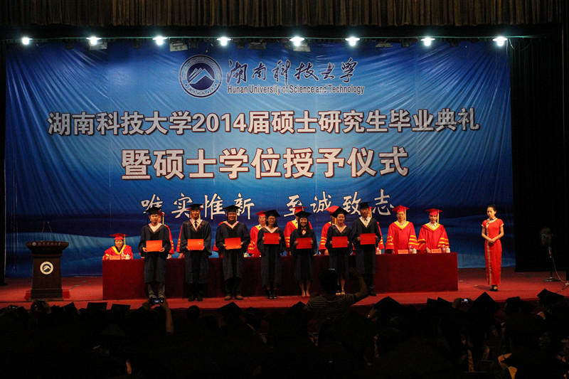 6月20日上午9:30,湖南科技大学2014届硕士研究生毕业典礼暨学位授予仪式在南校区俱乐部隆重举行。我校2014届全体硕士毕业生穿着整齐的硕士服,参加此次毕业典礼暨学位授予仪式。仪式由校长刘德顺主持。