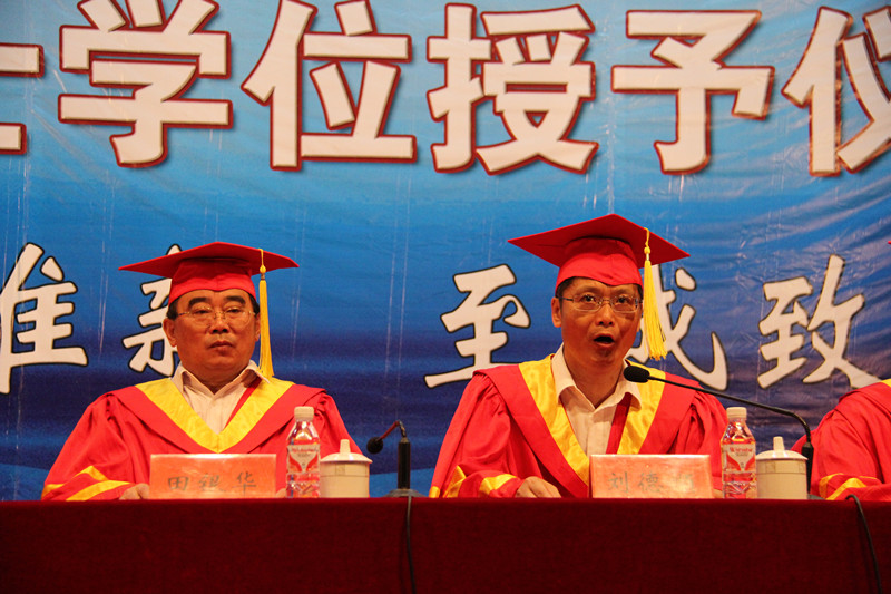 校学位评定委员会主席、党委书记田银华发表了激情澎拜的讲话。他向获得硕士学位的全体研究生表示热烈的祝贺,向研究生导师和家长们致以亲切的问候和诚挚的感谢。他以师长和朋友的身份,对毕业生们提出了四条人生建议:第一,要发扬脚踏实地的作风;第二,要固守内心的力量;第三,要养成坚持学习的习惯;第四,要时时保持一种大度。并衷心祝愿毕业生们在以后的人生路上,前程似锦,一帆风顺!