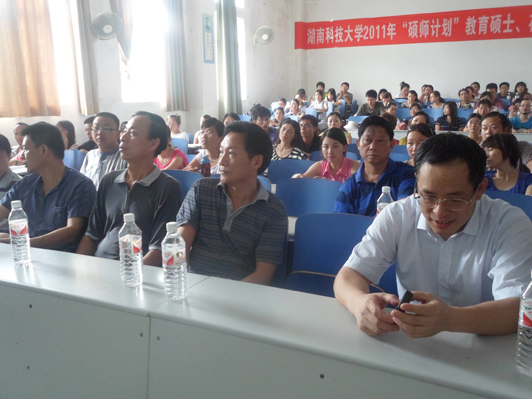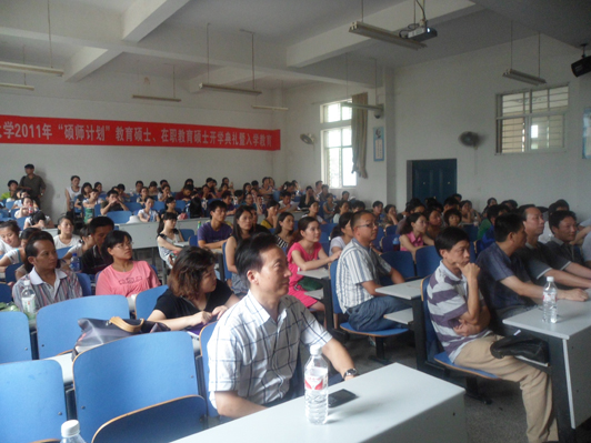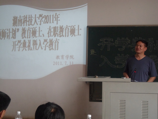 2011年7月11日下午3点,湖南科技大学教育学院2011年“硕师计划”教育硕士、在职教育硕士开学典礼暨入学教育在第八教学楼1-2隆重举行,研究生学院领导、教育学院领导、各方向负责人和2011年“硕师计划”教育硕士、在职教育硕士全体新生参加了本次开学典礼。