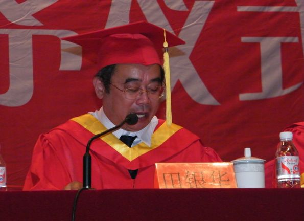 校学位评定委员会主席、党委书记田银华发表了热情洋溢的讲话。他向顺利完成学业的各位研究生表示热烈的祝贺,向研究生导师和家长们致以诚挚的感谢。他寄语毕业生们牢记母校校训,不断探求新知。希望同学们在离开学校后,继续牢记母校校训“唯实惟新,至诚致志”精神,始终保持对真理的执着;树立远大理想,勇于承担责任,立志养大气、做大事、成大业,报效祖国,服务社会;珍惜母校声誉,关注母校发展,无论走到哪里,无论从事何种职业,都代表着湖南科技大学的形象。并衷心地祝愿毕业生们在今后的人生征程中,鹏程万里、宏图大展。