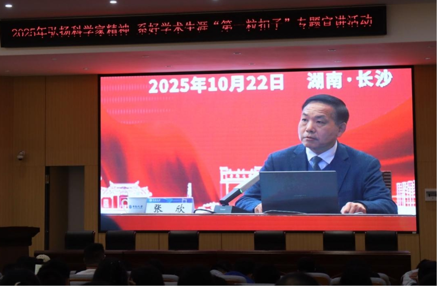 为深入贯彻落实党的二十届三中全会精神,进一步加强科研作风和学风建设,引导广大研究生自觉弘扬科学家精神,10月22日,湖南省“弘扬科学家精神 系好学术生涯‘第一粒扣子’”专题宣讲活动在中南大学举行,宣讲活动采取“线下+线上”相结合的方式。我校设立4个分会场,与全省其他111个分会场的科研工作者、青年学子共同参与。