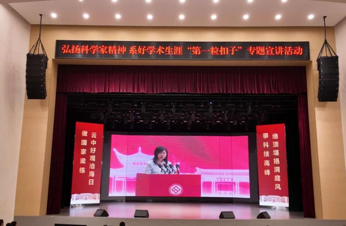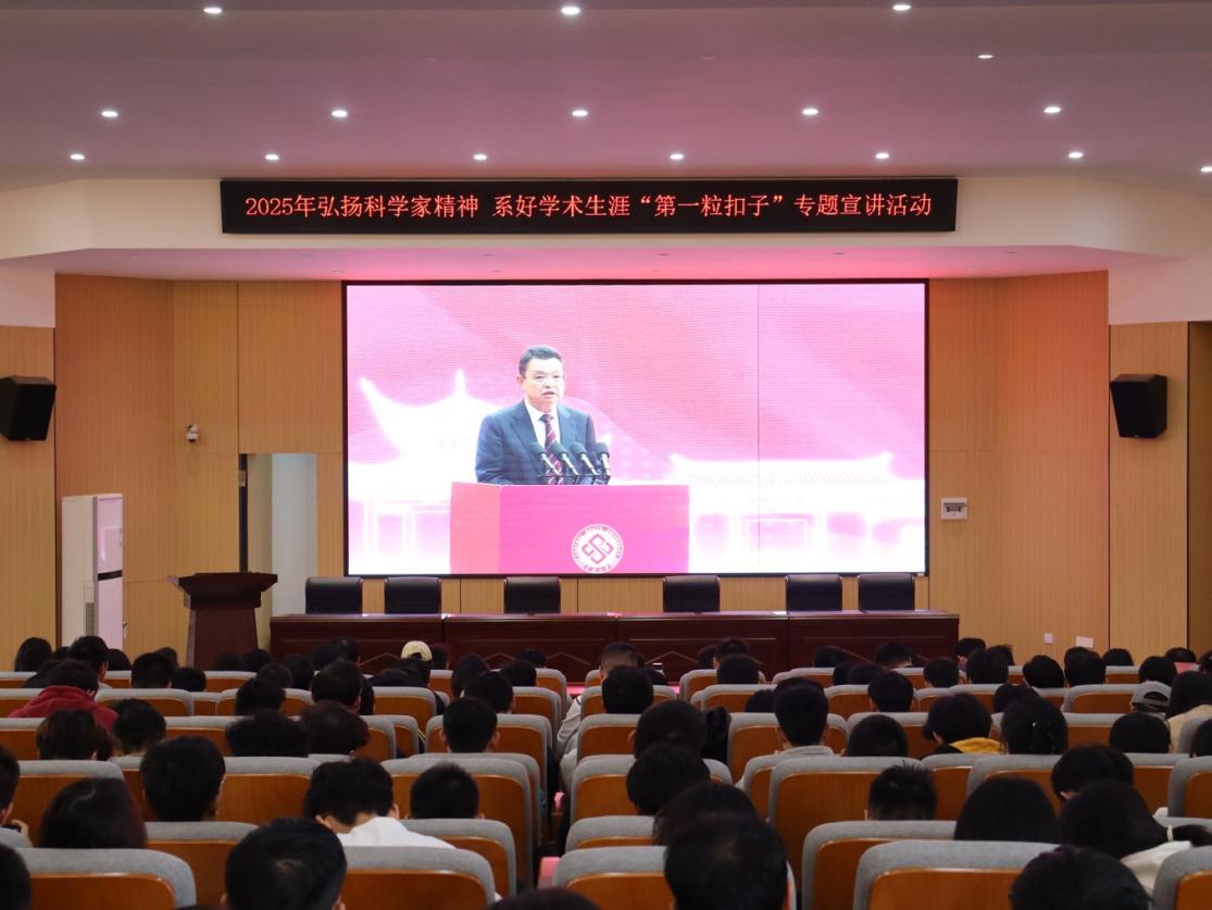 ▲“弘扬科学家精神 系好学术生涯‘第一粒扣子’ ”专题宣讲活动开场