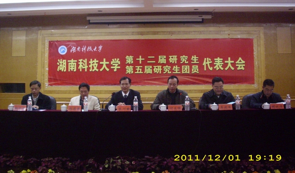 12月1日晚7:00,第十二届研究生代表大会暨第五届研究生团员代表大会在学术交流中心召开。湖南科技大学副校长朱川曲教授、校团委吴建军书记、研究生学院院长郭源君教授、研究生工作部何立强部长、研究生学院姚京成副院长、研究生学院副院长胡斌粱教授以及各教学院党委副书记、辅导员、研究生学院全体老师出席了会议。到会的还有第十一届研究生会第四届研究生团委全体干部、各学院研究生、团员代表等。