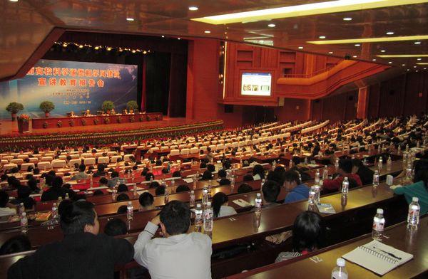 2011年10月15日上午9:00,我校研究生会全体成员在朱川曲副校长、何立强部长的带领之下在湖南省人民大会堂参加了由湖南省科学技术协会、湖南省教育厅及中南大学联合主办的“湖南高校科学道德和学风建设”宣讲教育报告会。此次会议的主题是“坚持科学道德与诚信,鄙视学术腐败与不端行为”,与会人员有湖南省科协党组书记、副主席邹志强,中国工程院黄伯云院士、刘筠院士,中国科学院姚守拙院士以及来自湖南省各个高校的领导及研究生。