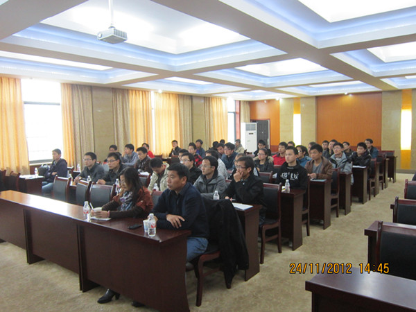 开幕式结束后,湖南省“芙蓉学者”特聘教授陈明为研究生作了“高端装备制造中数控刀具创新设计与应用”主题学术报告,并与研究生进行了交流。报告会由机电工程学院院长胡燕平教授主持。