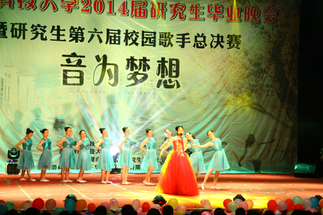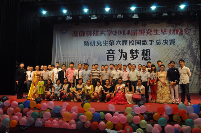 6月12日晚7:30,湖南科技大学2014届研究生毕业晚会暨第六届研究生“音为梦想”校园歌手总决赛在俱乐部拉开帷幕。湖南科技大学副校长陈安华教授、学校相关职能部门负责人,学院主管研究生培养工作的院领导和副书记,研究生秘书和辅导员、老师及研究生学院的全体人员应邀参加晚会,与研究生一起享受此次饕餮盛宴。
