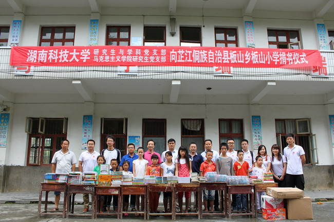 7月15日,研究生与学科党支部、马克思主义学院研究生党支部部分党员在湖南省芷江侗族自治县板山乡板山小学联合举办了爱心图书捐赠仪式。