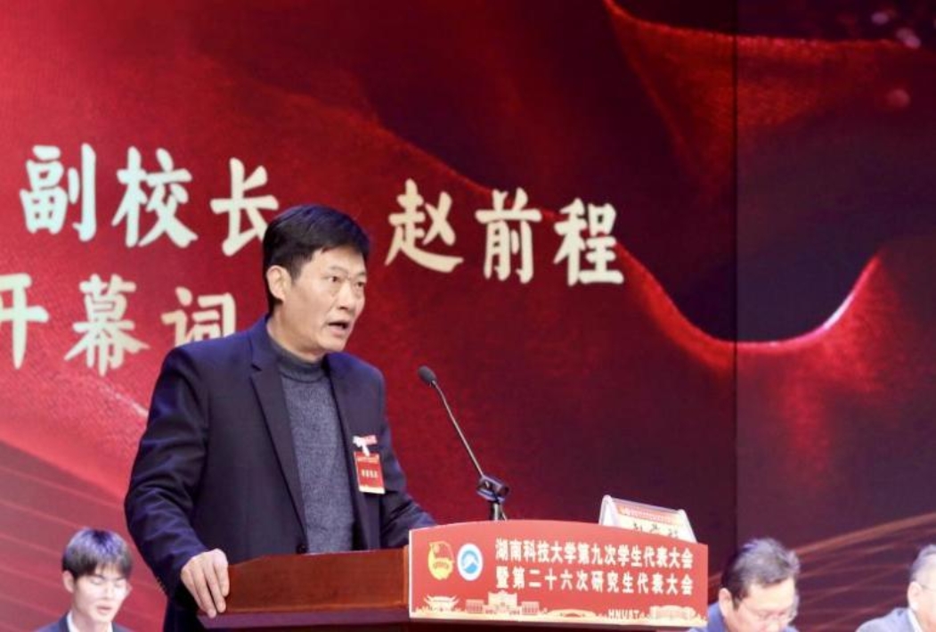赵前程致开幕词。他指出大会在“两个一百年”奋斗目标的历史交汇期和“十四五”收官、“十五五”开局背景下召开的重大意义。他向新一届学生会和研究生会提出四点期望:做政治坚定的“领航员”、履职尽责的“服务员”、学校发展的“勤务员”、投身国家建设的“接力员”,并号召全体青年学子以大会为新起点,勤学善思、锤炼本领,将个人理想融入学校事业发展与民族复兴伟业。