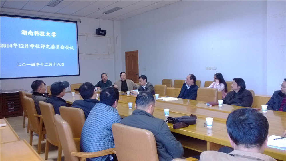 湖南科技大学2014年度学位评定委员会第二次全体工作会议于2014年12月18日下午在图书馆九楼会议室召开。会议由校学位