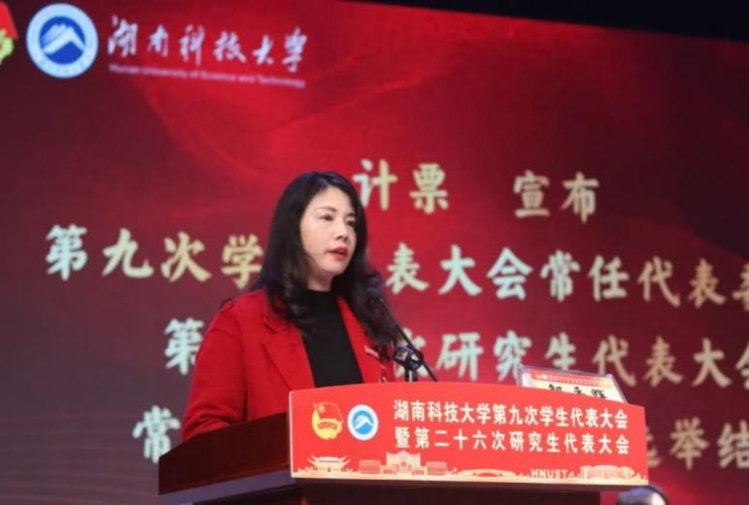 第二十五届研究生会执行主席贺璇代表湖南科技大学第二十五届研究生会向大会作主题为“凝心聚力践初心,青春建功向未来,为建设高水平综合性大学贡献智慧力量”的工作报告。报告总结过去一年来校研究生会在思想引领、学术创新、成长服务、精细管理与组织革新五大领域收获扎实成效。未来,研究生会将继续践行服务同学宗旨、凝聚青春合力,以实干助力研究生教育高质量发展,用青春才智赋能国家发展,践行青年担当。